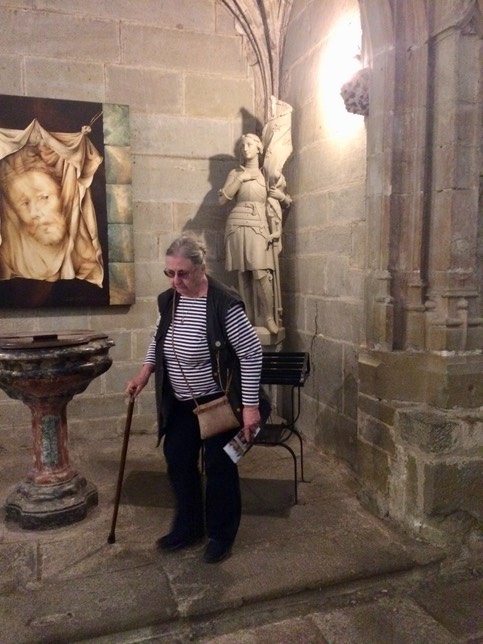 Stopped at a café Joan had her usual Cafe au lait - I switched from beer to hard cidre (brut) - then on to yet another church, inside another St Joan (very popular)