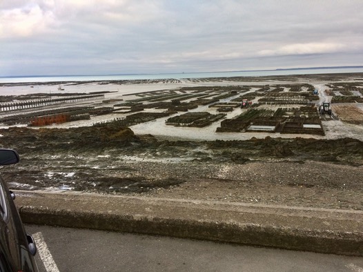 After a slow drive back into Brittany we stopped in Cancale, all the weekend tourists were gone. This town is said to be the biggest consumer of oysters, and we saw the beds where they have vast oyster farms