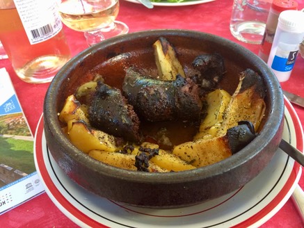 After we settled in, went to see about dinner. No fancy restaurants in this village, found a little place, looked closed but I saw through the window that the rear dining room was lit up. The owner/cook didn’t speak english but we got by. No menu - he said they had mussels, or steak. That was it. Joan had the mussels, said they were very garlic and good. I had the steak, two pitchers of wine; with an Armagnac to wash it down.